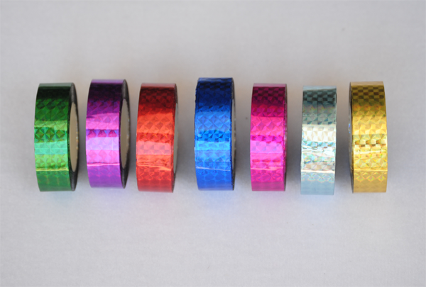 Rollo de 9,14 metros de Cinta decorativa efecto prismatico, con pegamento continuo.