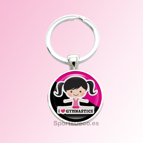 Llavero Figura “I Love Gymnastics” hecho de Cristal Con Base Metalica.