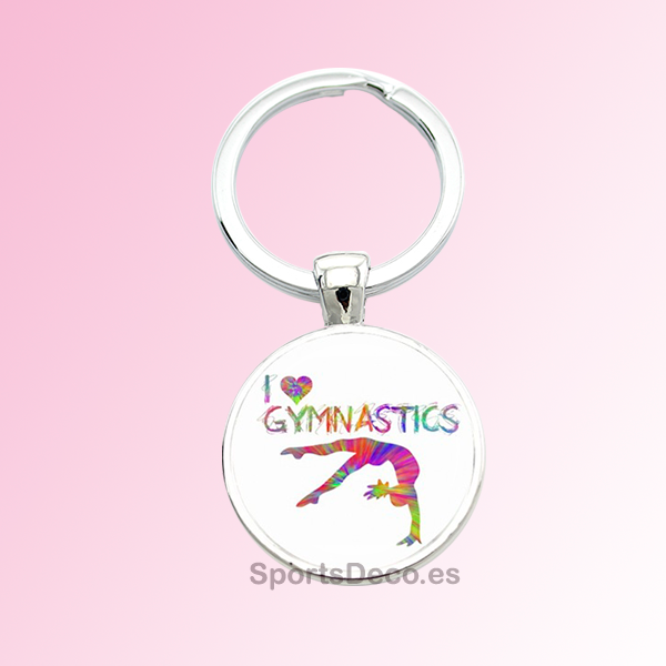 Llavero Figura “I Love Gymnastics” hecho de Cristal Con Base Metalica.
