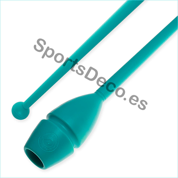 Mazas de goma bicolor engarzable para gimnasia rítmica. Cabeza de caucho (Aguamarina) y palo de plástico (Aguamarina).