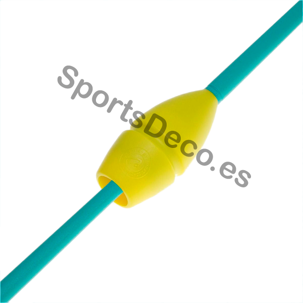 Mazas de goma bicolor engarzable para gimnasia rítmica. Cabeza de caucho (Amarillo) y palo de plástico (Aguamarina).