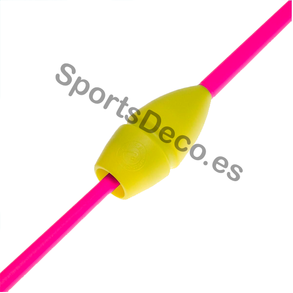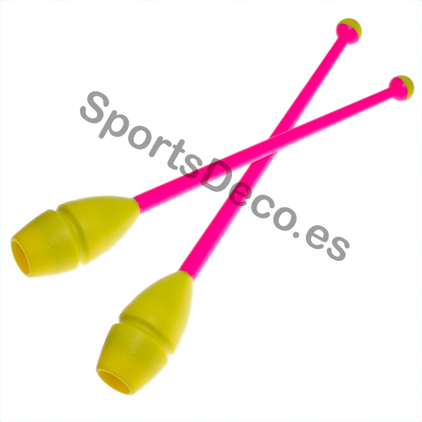 Mazas de goma bicolor engarzable para gimnasia rítmica. Cabeza de caucho (Amarillo) y palo de plástico (Rosa).