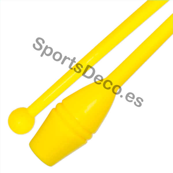 Mazas de goma bicolor engarzable para gimnasia rítmica. Cabeza de caucho (Amarillo) y palo de plástico (Amarillo).