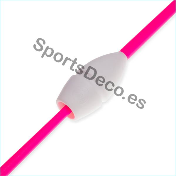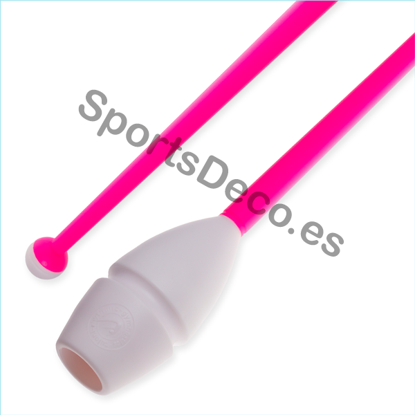 Mazas de goma bicolor engarzable para gimnasia rítmica. Cabeza de caucho (Blanco) y palo de plástico (Rosa).