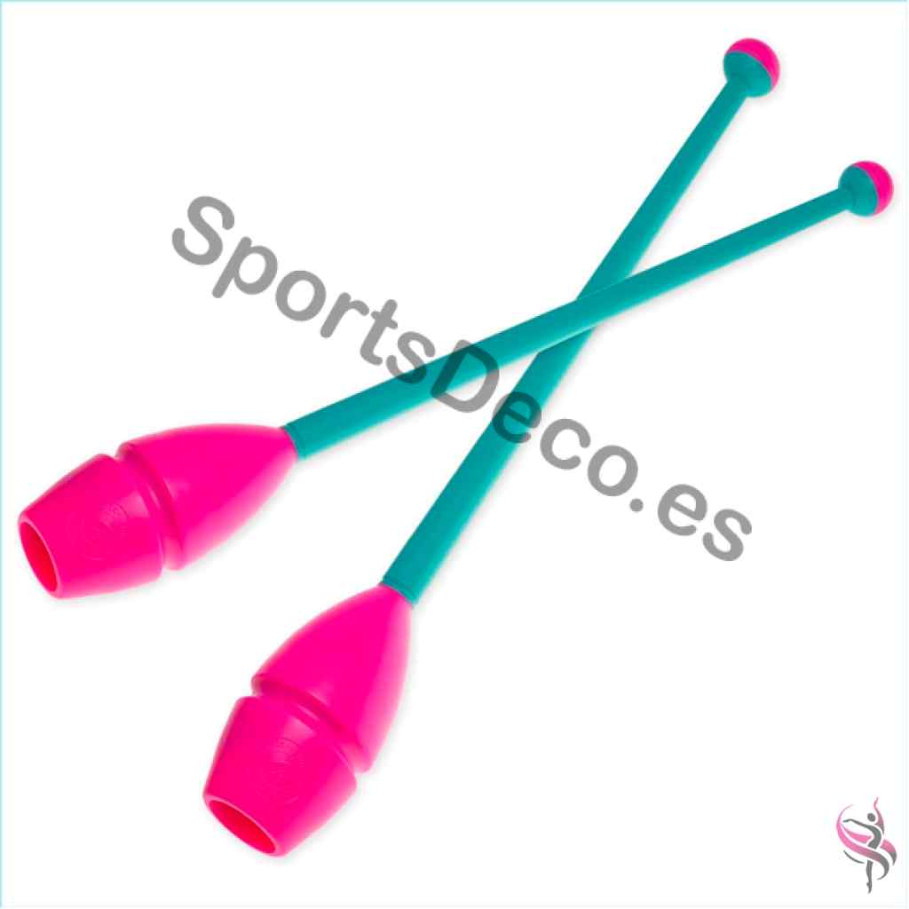 Mazas de goma bicolor engarzable para gimnasia rítmica. Cabeza de caucho (Negra) y palo de plástico (Aguamarina).