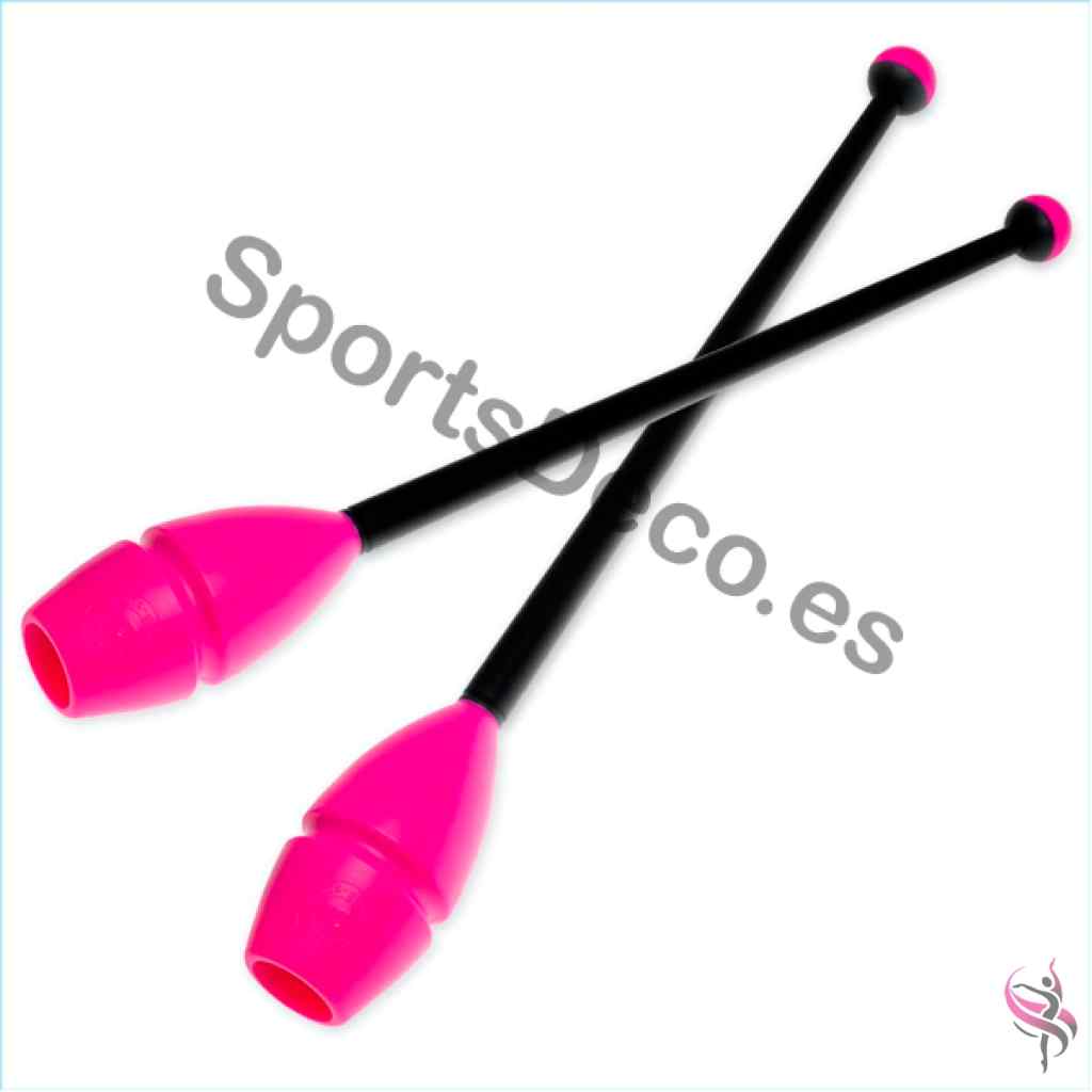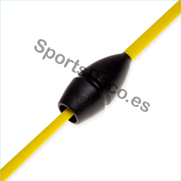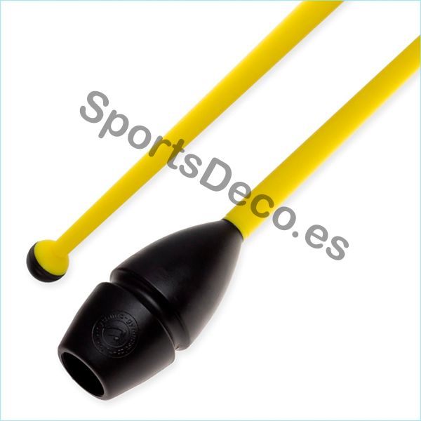 Mazas de goma bicolor engarzable para gimnasia rítmica. Cabeza de caucho (Negra) y palo de plástico (Amarillo).