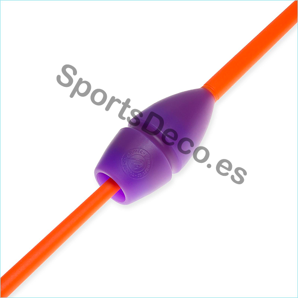 Mazas de goma bicolor engarzable para gimnasia rítmica. Cabeza de caucho (Violeta) y palo de plástico (Naranja).