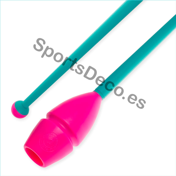 Mazas de goma bicolor engarzable para gimnasia rítmica. Cabeza de caucho (Aguamarina) y palo de plástico (Negro).